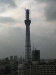 友人宅から見えるスカイツリーは現在、ここまで。ゴンドラでの作業を初めて目撃。
