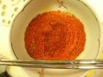 特筆すべきは唐辛子パウダー。スーパーで購入したものに本場ものをブレンド。真ん中の色の濃いものがそれ。見た目だけじゃなく味も違う!…辛い!2回の味見で舌が馬鹿になったので、別茹でしておいた鶏皮に絡ませて味を整えた。よかったよー鶏皮を取っておいて。