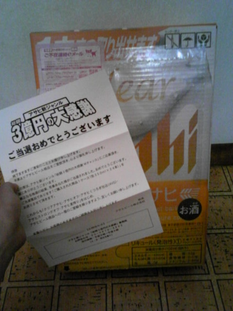久々に懸賞に当たった!なーんとビール1ケース!でもいつ応募したんだっけ…多分ネットから送っている中のひとつだろうけど…。