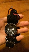 気に入ったモノが全く見あたらなくて裸ん坊になっていた相棒に、リボンと安全ピンと商品タグで作ってあげました。というのもさー、代替時計のスウォッチのベルトも切れちゃったからなんだな。