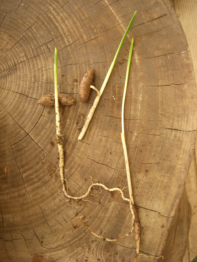 雨が止んだ隙に、プランターの整理を。剪定したバラから根(カルス)が出たので見覚えの無い植物を抜いて場所を作ったのだけど、なんとこれ、ドライフルーツのデーツ(ナツメヤシ)の種から芽を出したものだった。