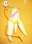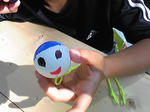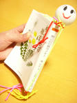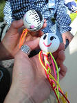 今日、作ったものは、ピンポン玉の頭とゴムひもの身体を持つ”しおり”です。