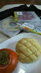 なんて考えながらパソコンに向かっていたら、お隣さんからメロンパンと柿と、DVDがやって来た。