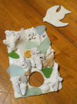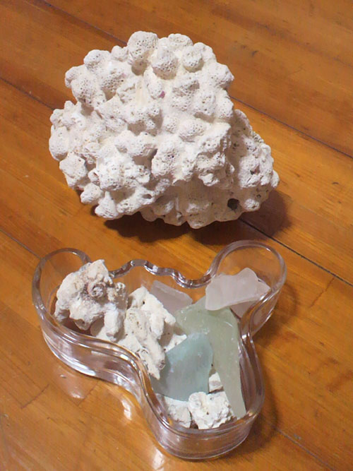 日曜に工作した珊瑚とビーチガラスを取り付けてみた。…鳩が邪魔だな…やっぱり木材もあった方が良いな…
