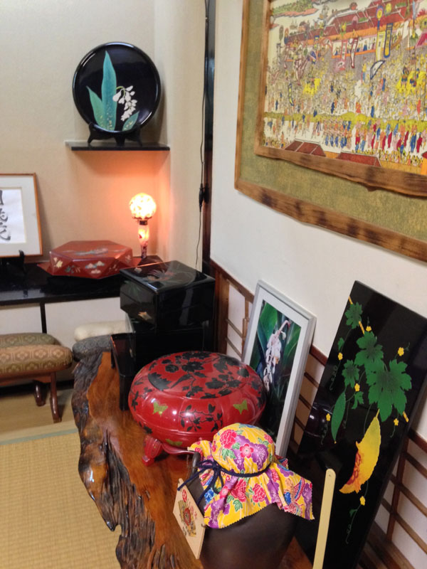 親戚のお姉さん達と工芸品と酒瓶に囲まれたランチ、