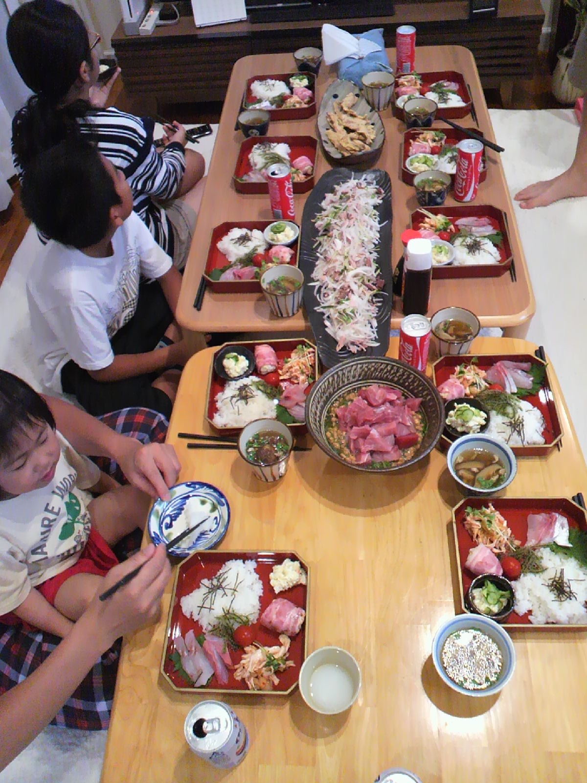 どんどこテーブルへ…子ども達はテレビに夢中…(慣れって恐いな!)