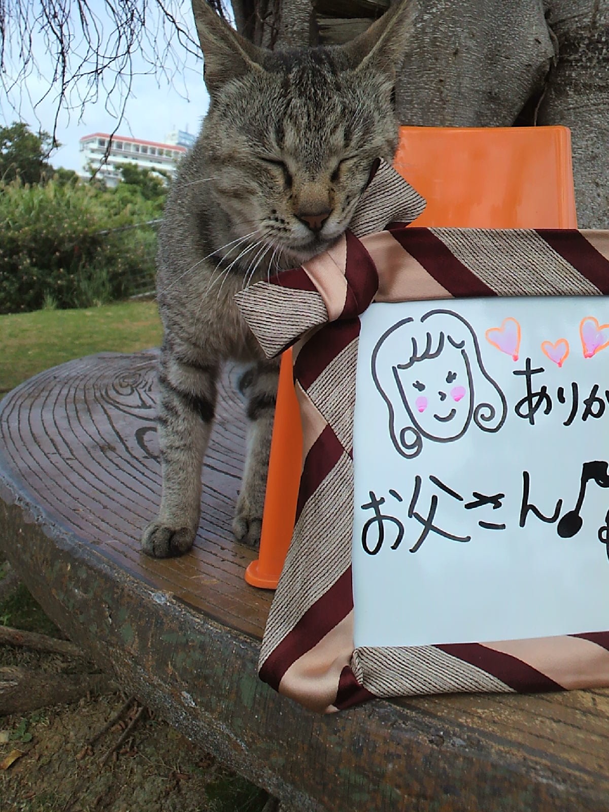 きじネコに敵わないらしいグレーのトラ夫がいそいそと近づいて…