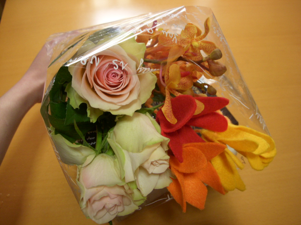 耳にはカラーワイヤーが入っているので自由に角度を付けられます。片方の耳が千切れてしまった感じなのは、ご愛嬌。