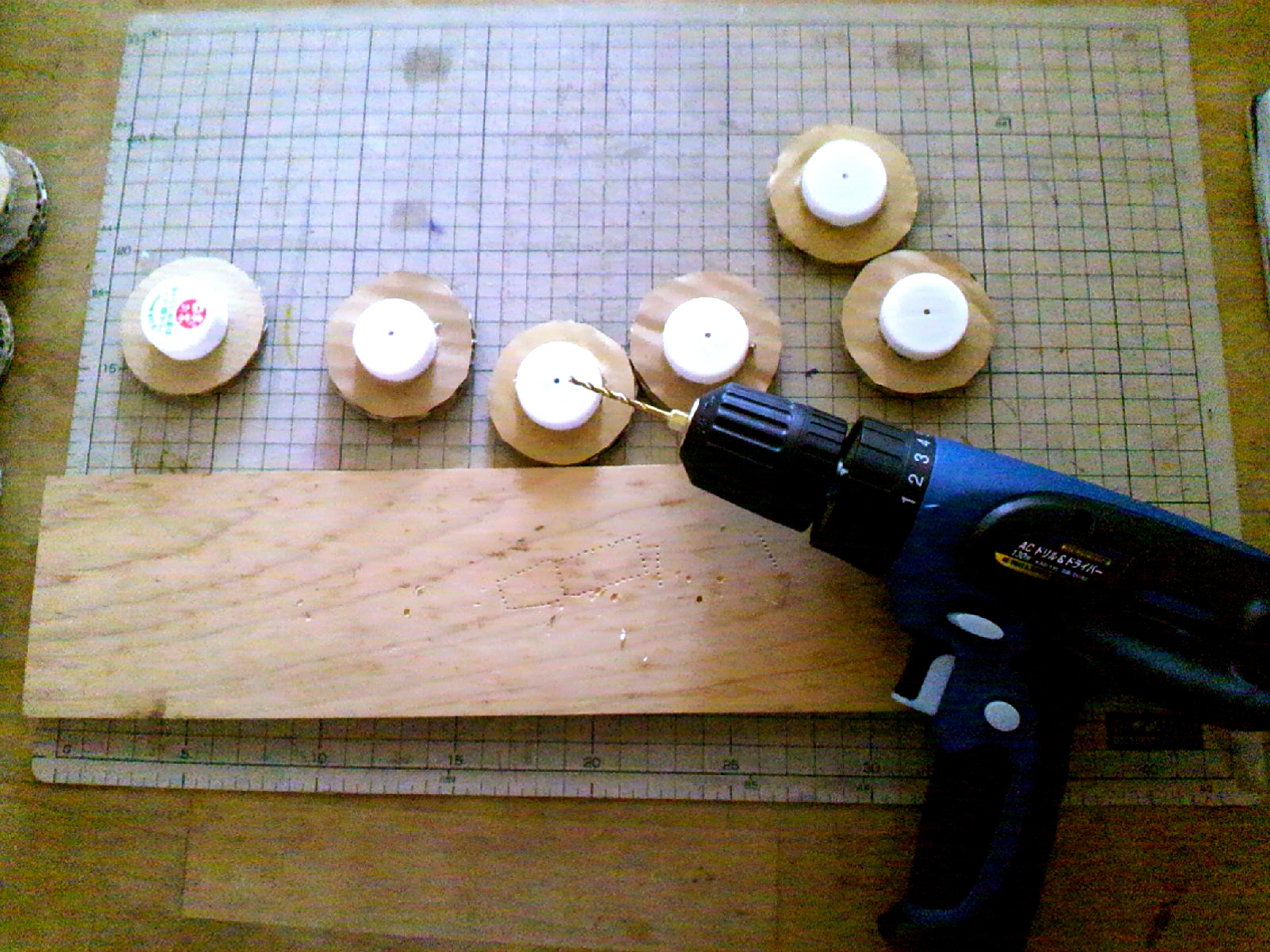 ヨーグルトの箱と段ボール、ペットボトルのふたなどで可愛く仕上げます。