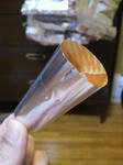 ジュースの容器の幅に切りそろえて銀色を外側にして筒にします。