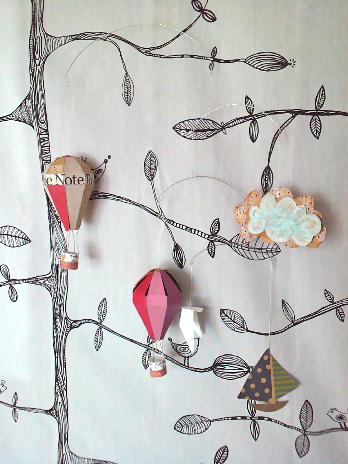 部屋が見本のモビールだらけです。