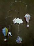 クラフトペーパーで気球2種、雲、ヨット、そして白い鳥の5つのモチーフで、
