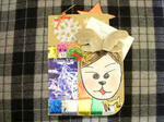 既存のメロディーカードと段ボール、飾り(共にクリスマス用)を使った、オリジナルのクリスマス・カード作りです。
