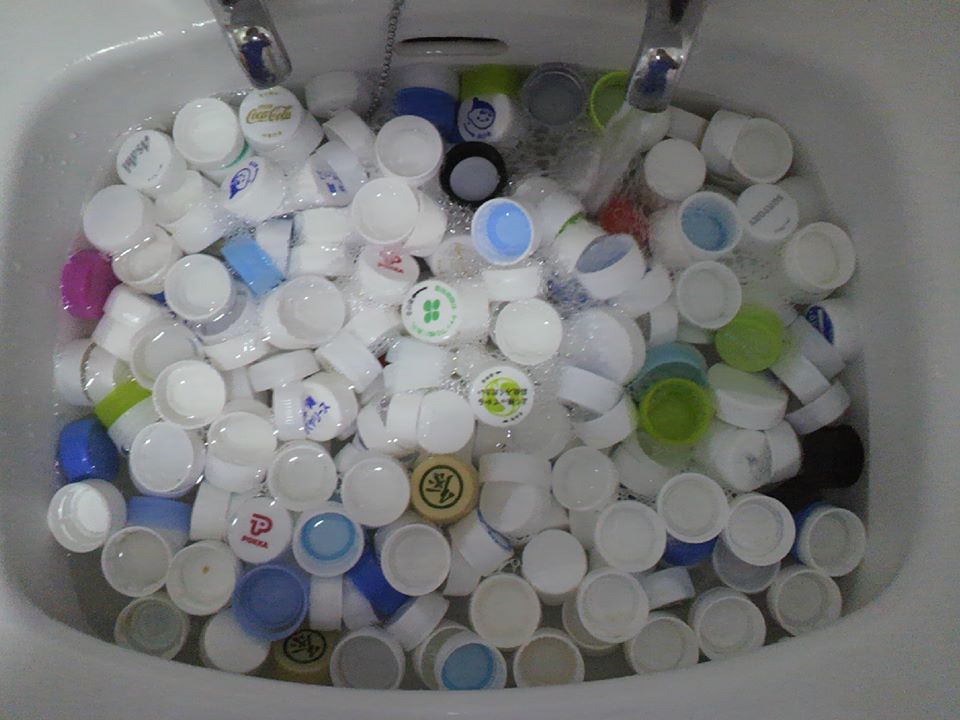 ペットボトルのフタやヨーグルト容器を提供してくれる