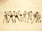 美術館のショップで購入したBoxer柄のシールを使って、何か面白い物ができないかな、と風船に巻き付けてみた。イメージは、映画なんかでよくトレーニングのシーンで見かける、リズムを刻みながら叩かれているあれ。風船の形も結構似てるし。と思ったのだけど、本当の目的は風船が萎んだ後のこと。電球の傘みたいな物が残ったら楽しいなと思っていた。